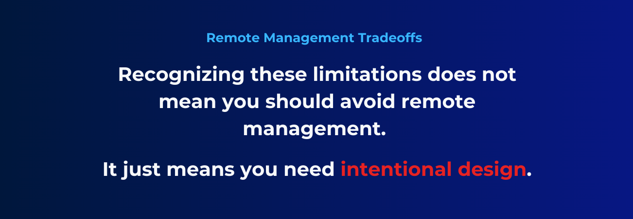 Recognizing these limits does not mean you should avoid remote management. It simply means you need intentional design.